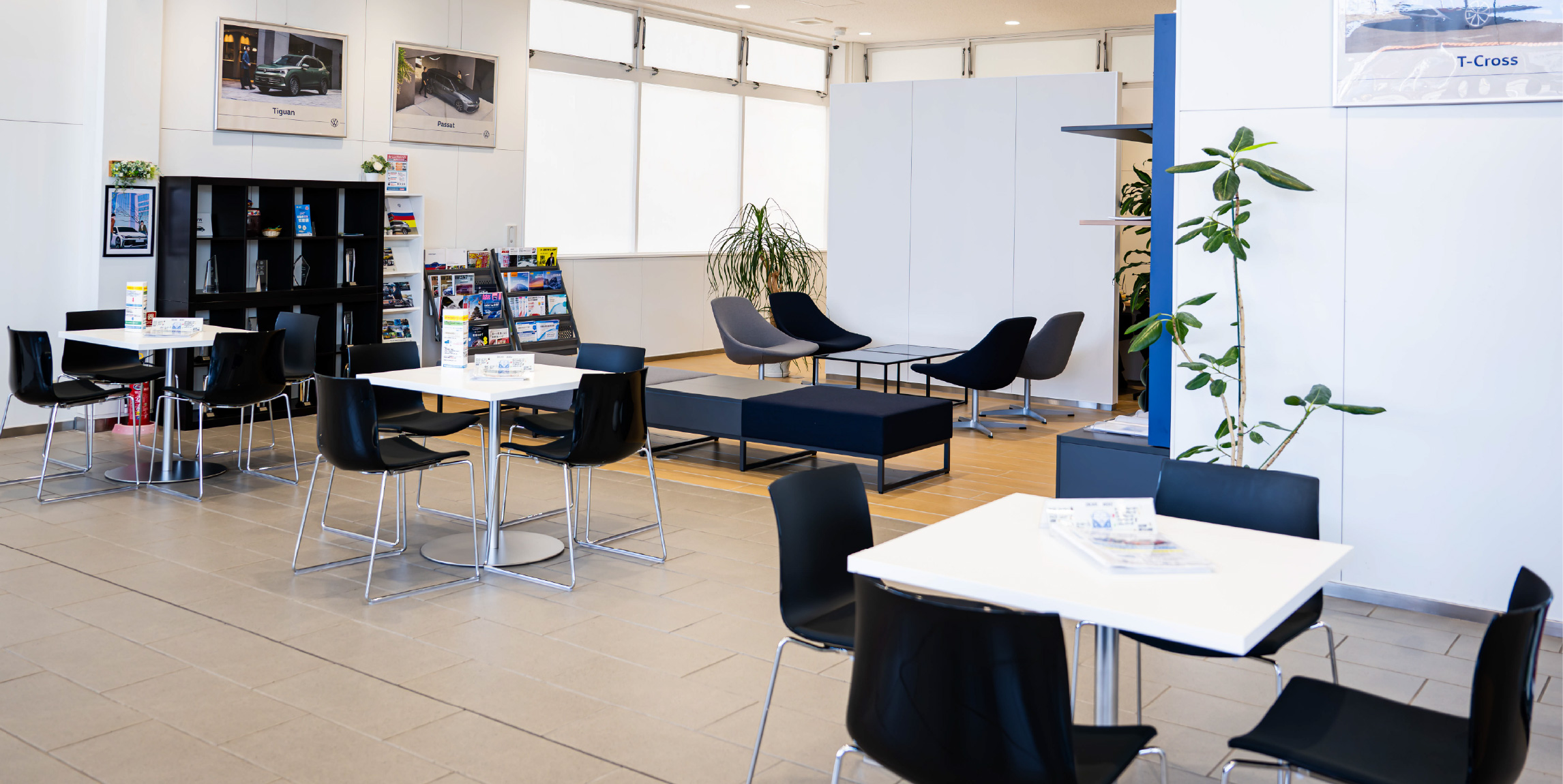 当店には、新車・認定中古車を展示しております。また、サービス工場を併設しておりますので、メンテナンスを受けながらフォルクスワーゲンの最新情報を知っていただくことができます。お車のメンテナンスや、ご検討の際にはぜひお気軽にお立ち寄りください。