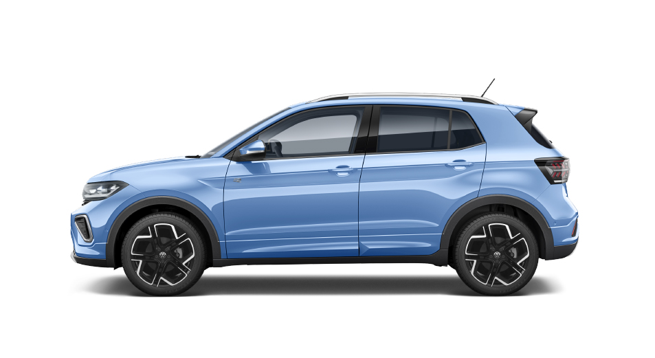 T-Cross TSI R-Line ボディカラー:クリアブルーメタリック(R9)* ●スタイリングイメージ *有償オプションカラー