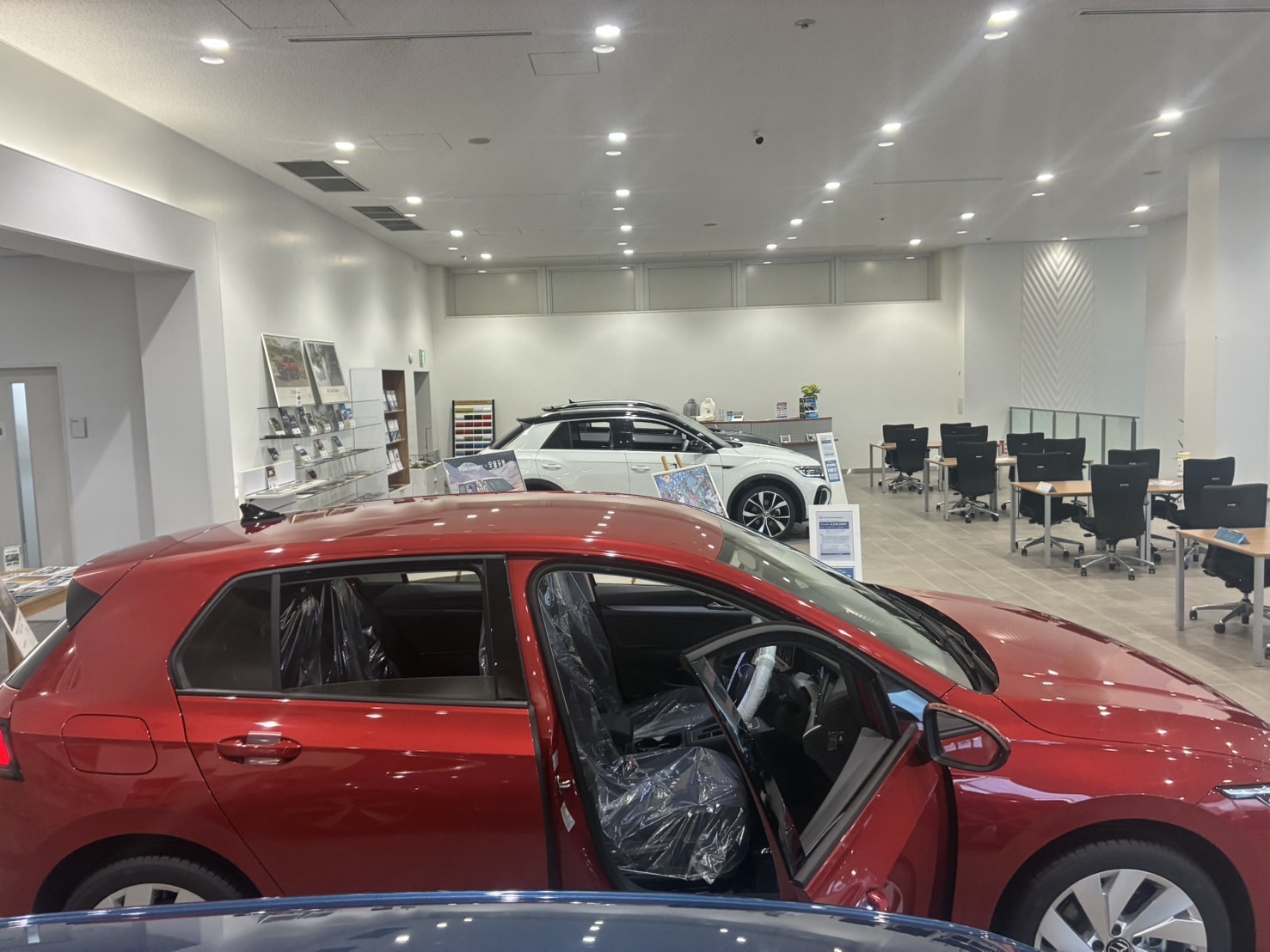 店内や屋外にはポロ・ゴルフ・T-Cross・ID. Buzzなど、人気の車種、新型車種の試乗車・展示車も多数ご用意。