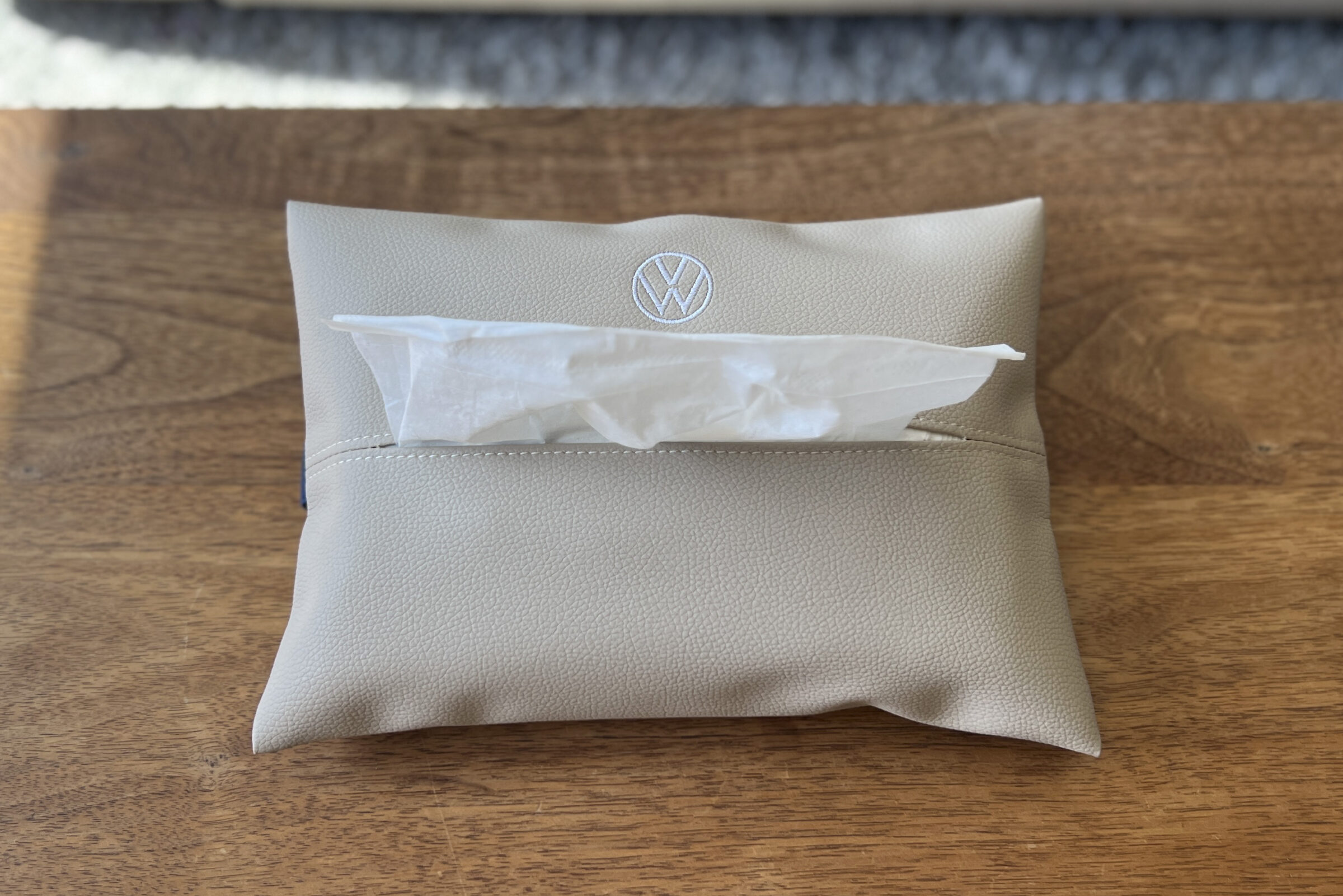 VWロゴを刺繍で施し、やわらかな質感と上品な佇まいが魅力で、車内はもちろんリビングやオフィスにも自然になじみ、毎日使いたくなる特別感を演出します✨