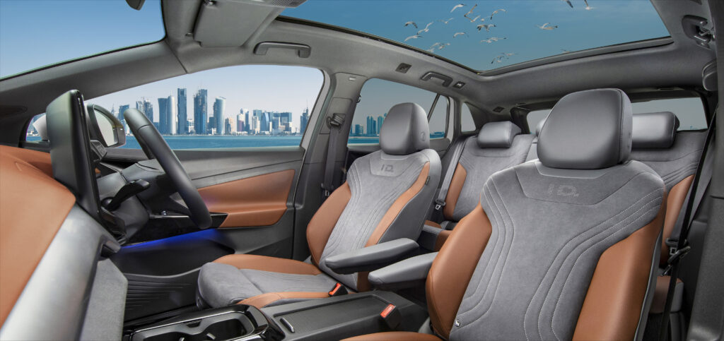 ID.4 Pro ボディカラー:グレイシアホワイトメタリック(2Y)/ブラックルーフ シート:ブラック&フローレンスブラウン(SD) ●インテリアイメージ