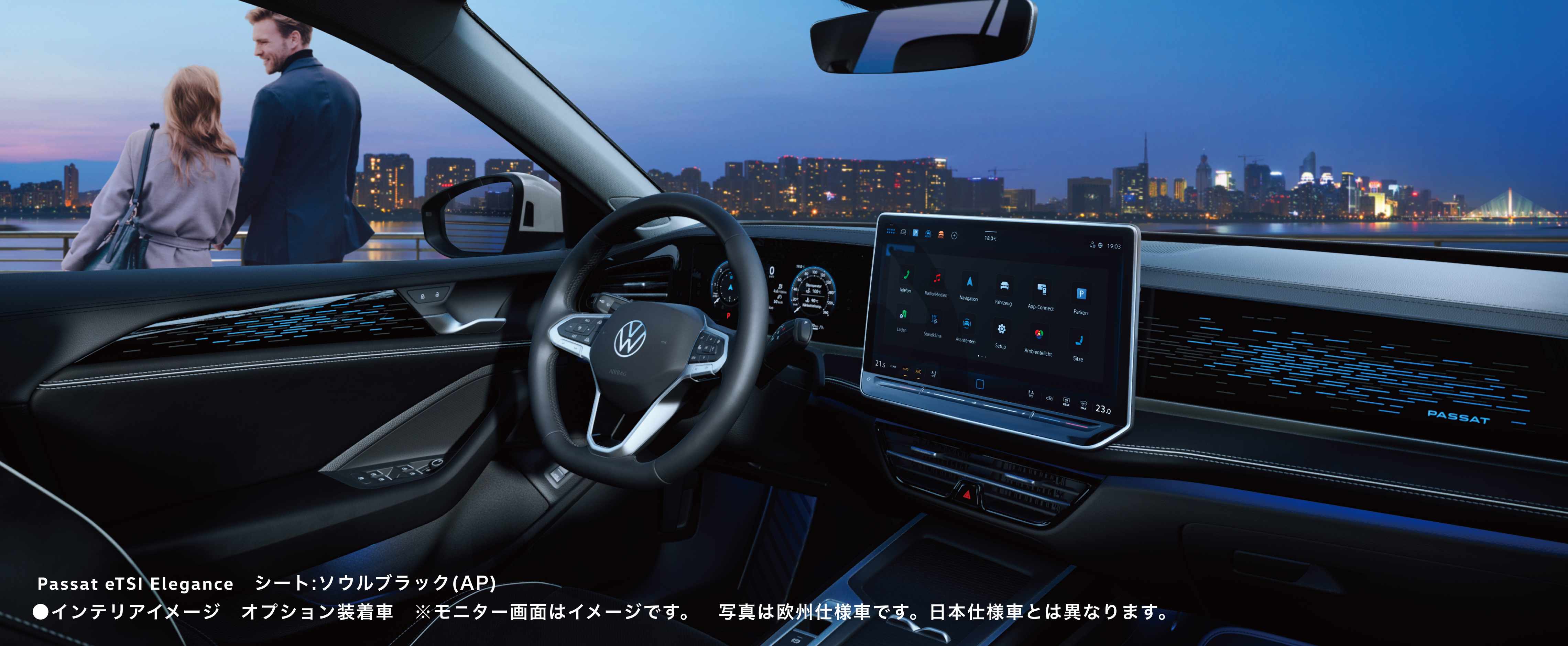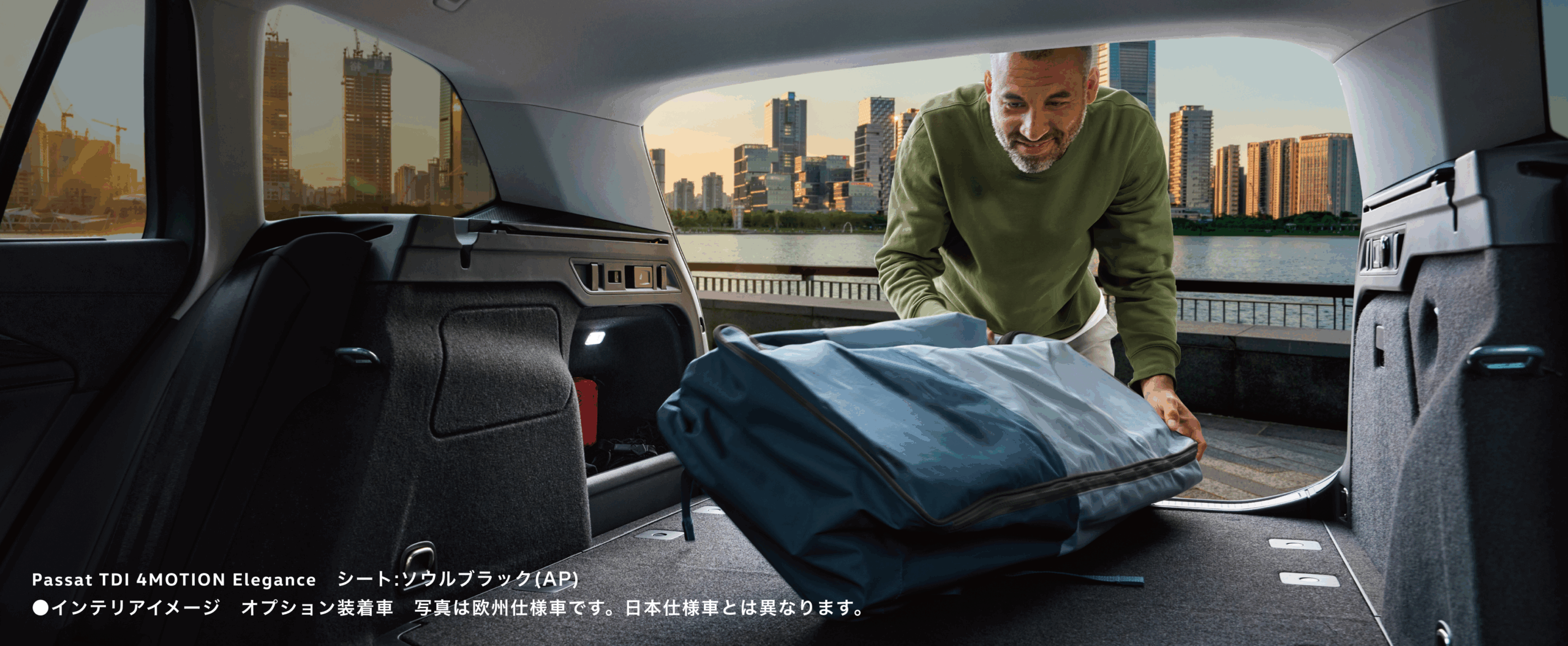 かつてない寛ぎに包まれるキャビン。新型パサートはホイールベースを大幅に拡大し、後席の足もとまでゆとりあふれる空間に。