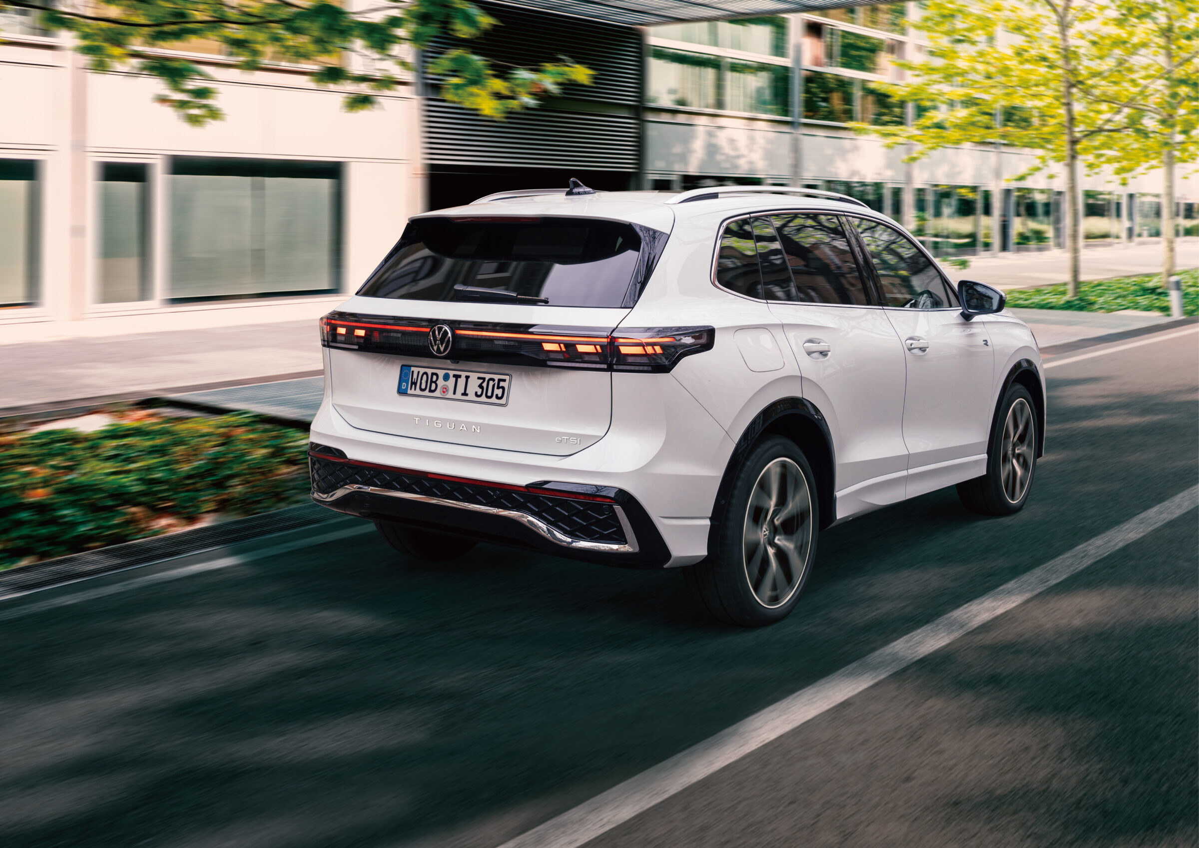 Tiguan eTSI R-Line ボディカラー:オリックスホワイト マザーオブパールエフェクト (0R)* *有償オプションカラー オプション装着車 ●スタイリングイメージ